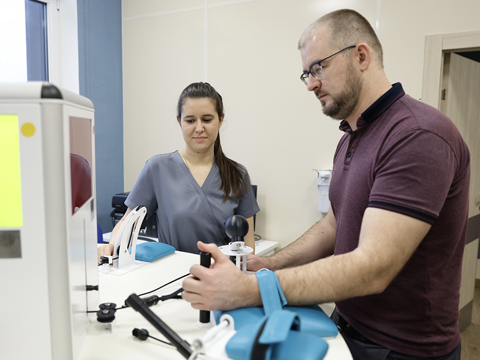 В декабре здесь открылось отделение медицинской реабилитации. Его посещает в том числе ветеран СВО Александр, который потерял ногу после атаки дрона в марте 2024 года.