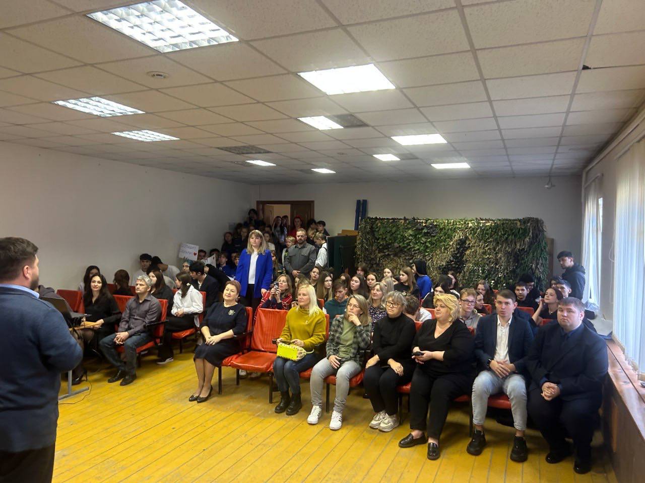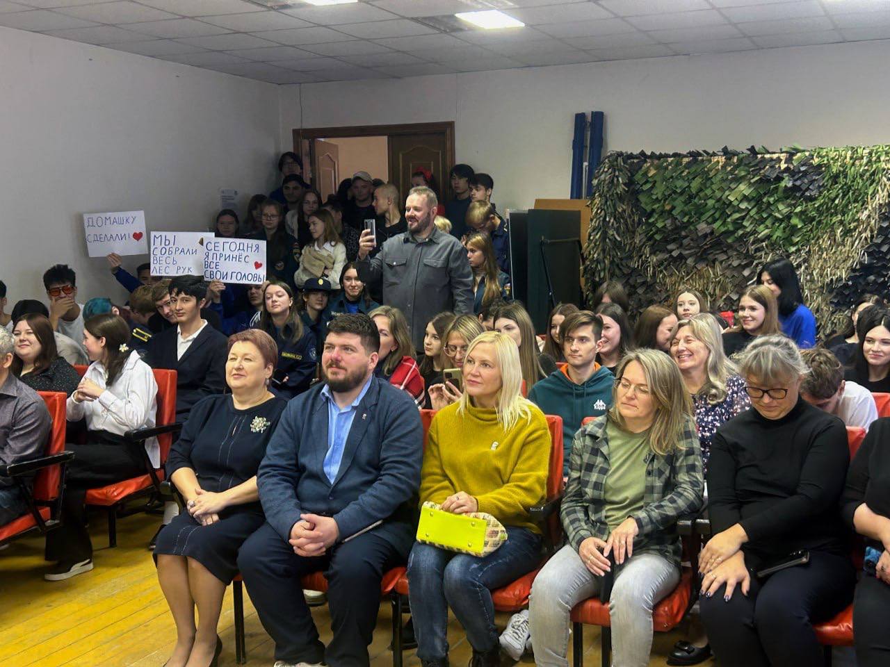 Местный партиец и волонтер Вячеслав Градин поздравил преподавателей с их профессиональным праздником.