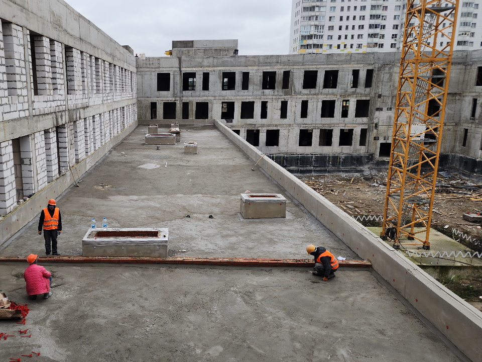 «Рабочие ведут монтаж кровли и параллельно устанавливают окна и фасадную плитку. Кроме того, к зданию прокладывают сети теплоснабжения. Водопровод и хозяйственно-бытовая канализация уже смонтированы. Внутри здания большая часть перегородок построена», — добавил Курбаниязов.