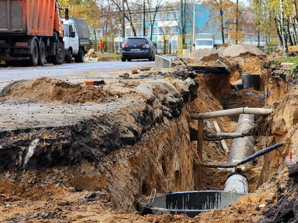 Параллельно рабочие приступили к подготовительным работам на следующем участке, расположенном рядом с Никольским парком: сейчас здесь формируют траншею для укладки труб.