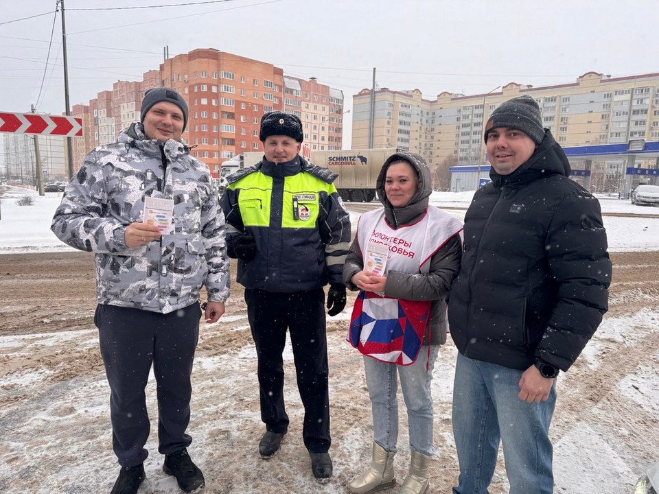 Луховичанам участники акции раздают световозвращающие элементы и тематические памятки с правилами дорожного движения.