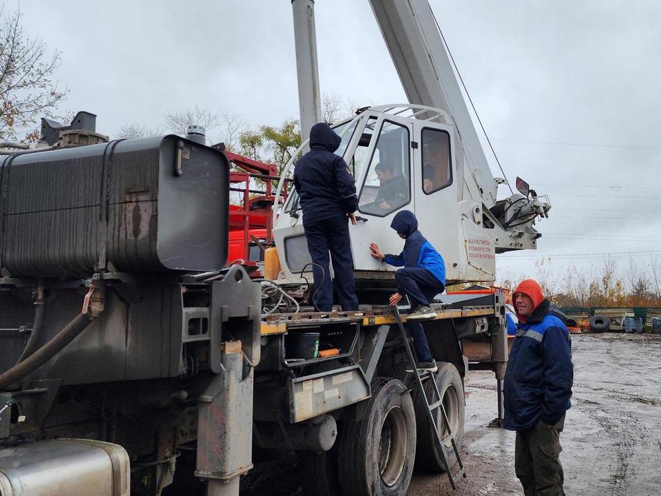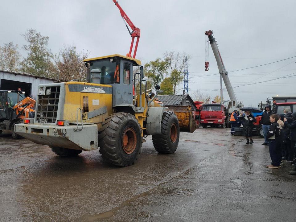 Ребята посидели в кабинах погрузчиков, самосвалов, коммунальных дорожных машин, автовышек и автокранов. Они с большим интересом крутили руль, изучали панели управления и задавали вопросы.