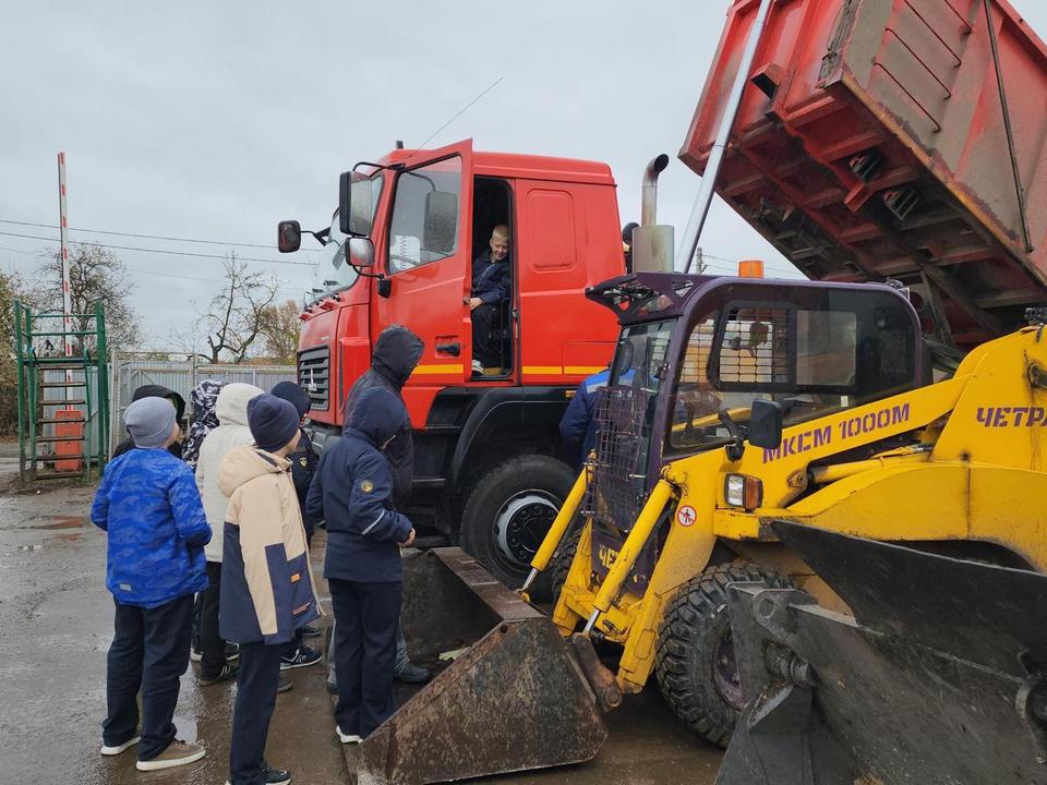 В луховицком Комбинате по благоустройству и бытовому хозяйству провели экскурсию для учеников Выкопанской школы. Ребята увидели и изучили спецтехнику, которая используется в работе коммунального предприятия. Экскурсию для них провел начальник транспортного отдела КББХ Андрей Аристов.