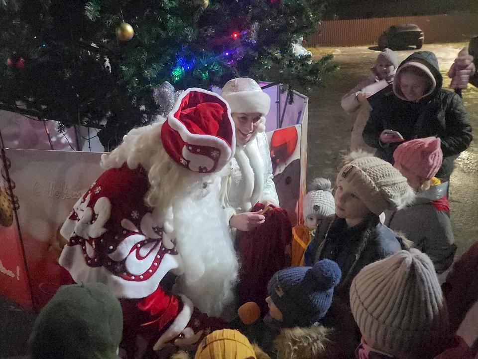 После зажжения елочных огней началась праздничная программа с хороводами, играми и конкурсами, чтением стихов Деду Морозу.