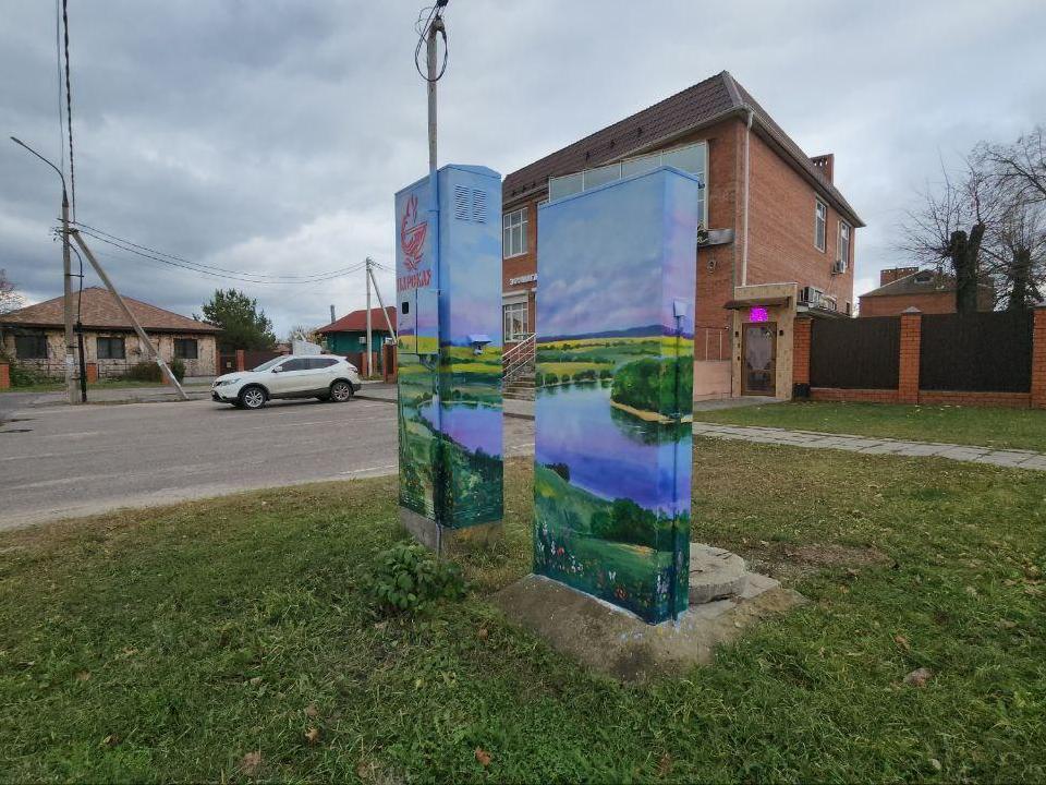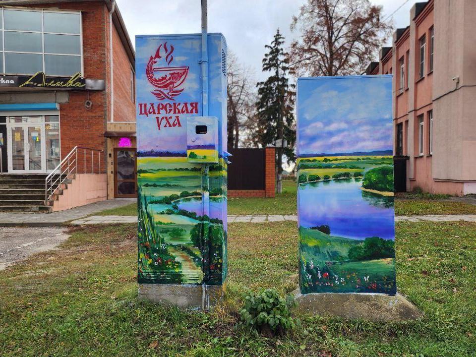В Белоомуте под Луховицами реализован стрит-арт проект по преображению городского пространства – неприметных коммуникационных шкафов. Инициатором выступила компания «Ростелеком», которой принадлежат эти объекты, а воплотила замысел художница Елена Киняева.