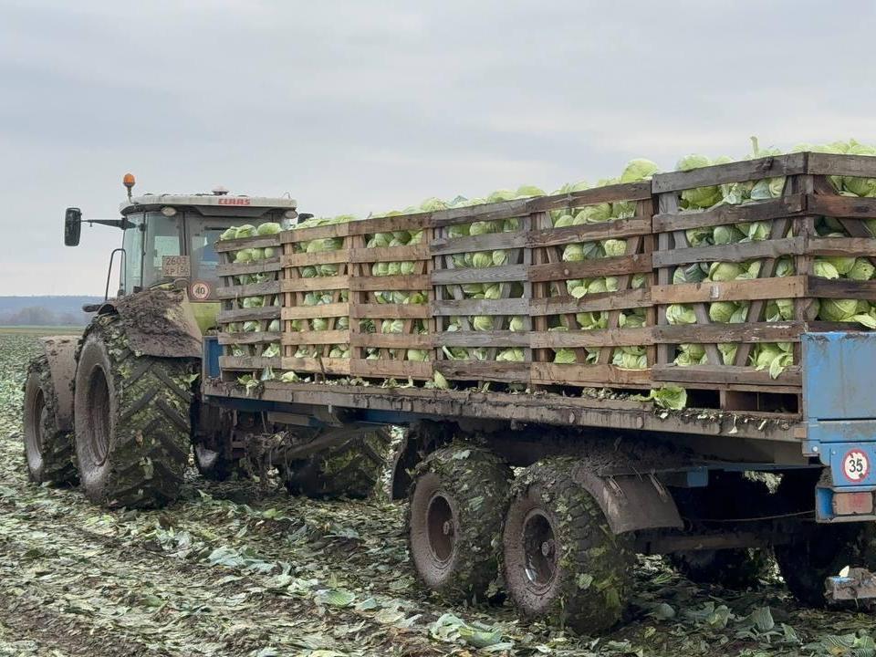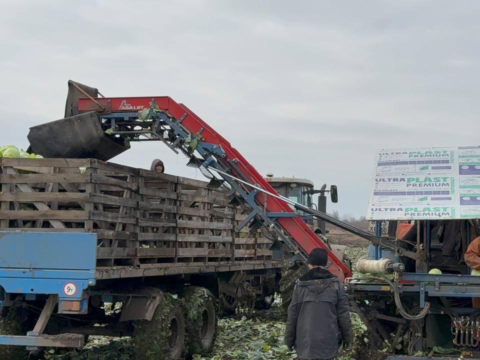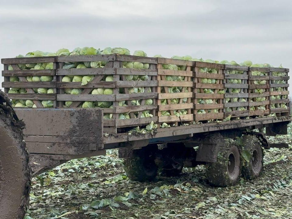 На полях крестьянского фермерского хозяйства Сергея Соина аграрии завершили уборку капусты. С 16 га собрано 1120 т. белокочанной капусты. Ее уборка проводится с помощью комбайна, а рабочие вручную сортируют урожай.