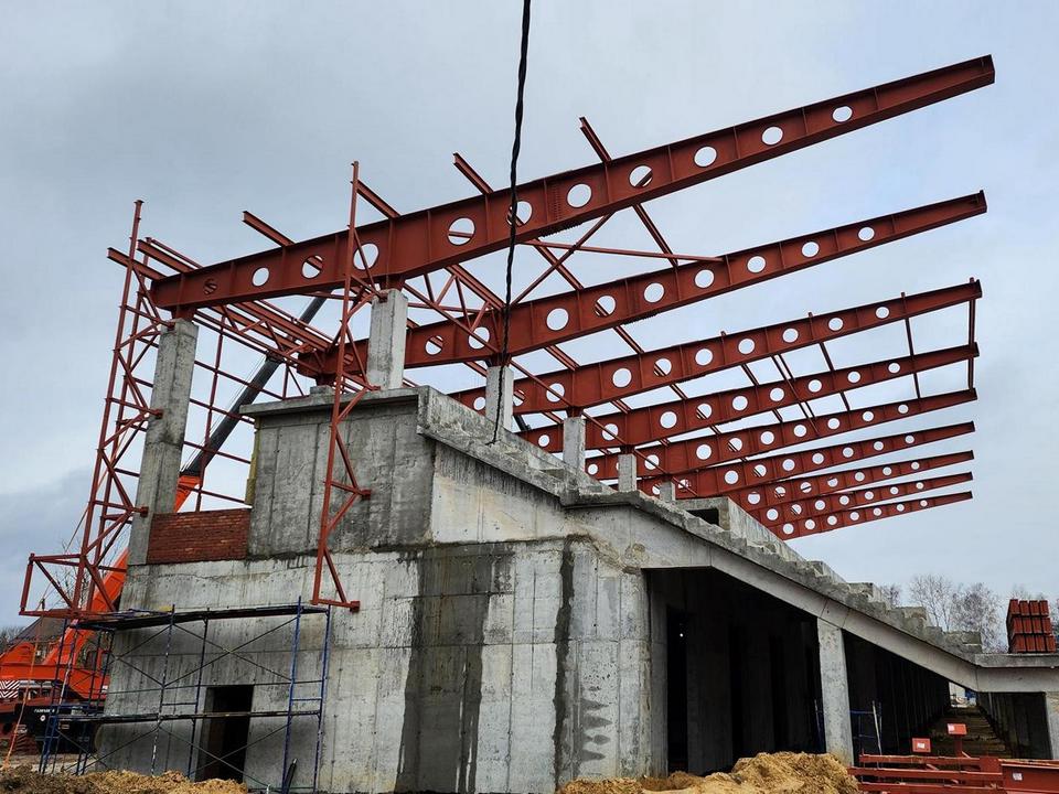 В Луховицах продолжается реконструкция стадиона «Спартак». Работы ведутся по государственной программе Московской области «Строительство объектов социальной инфраструктуры». Строители монтируют металлоконструкции кровли над трибунами, занимаются внутренней отделкой и благоустройством территории.