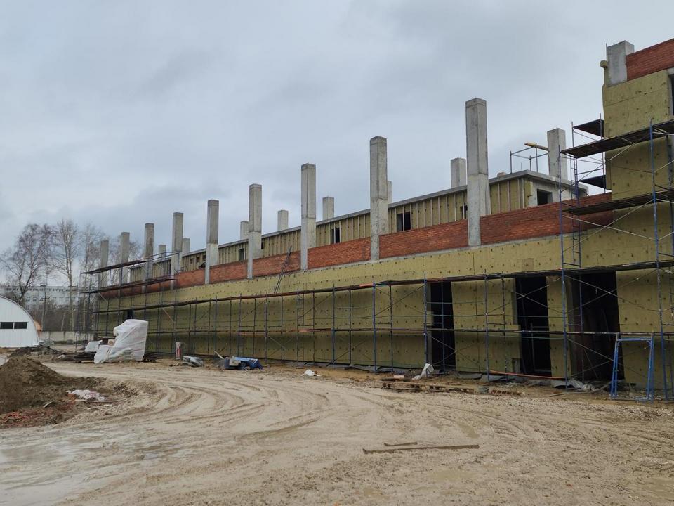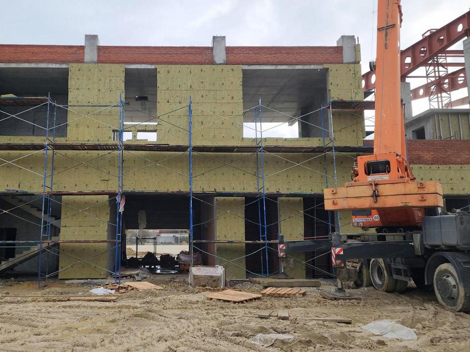 «Внутри здания ведется кирпичная кладка перегородок. На первом этаже эти работы завершились, и бригады уже приступили к устройству перегородок на втором этаже. Также идут наружные — утепляем фасад», — сказал начальник участка Дмитрий Казиев.