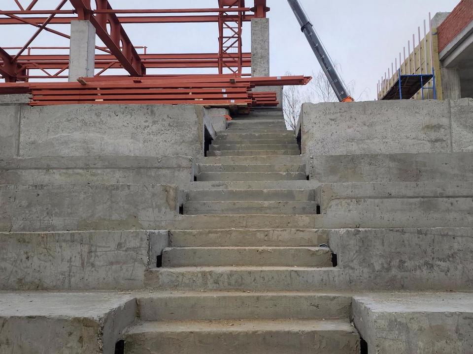 Подрядчики возвели трибуну на 1,5 тыс. зрителей. Она будет крытой, и болельщикам, которые придут смотреть соревнования, не помешают дождь и снег. В здании обустроят административные и спортивные помещения, санузел. Футбольное поле сделают с искусственным покрытием. Еще проект предусматривает беговые дорожки и универсальную спортплощадку, парковку и шумозащитный экран.