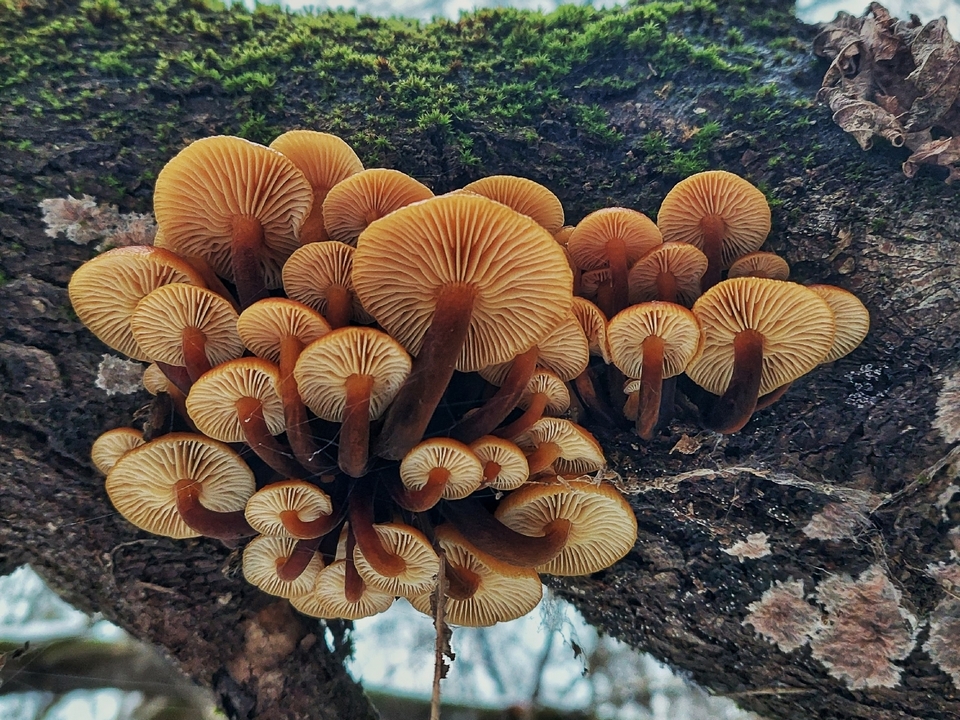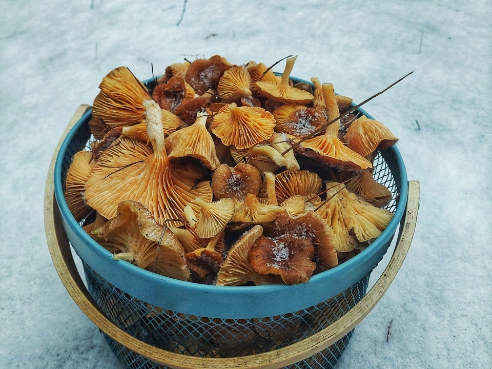 «Фламмулина — зимние опята — наросла новая. Мне попались хорошие сростки. Да еще и мелких полно, так что грибной сезон пока что продолжается», — сказал Василий Потапов.