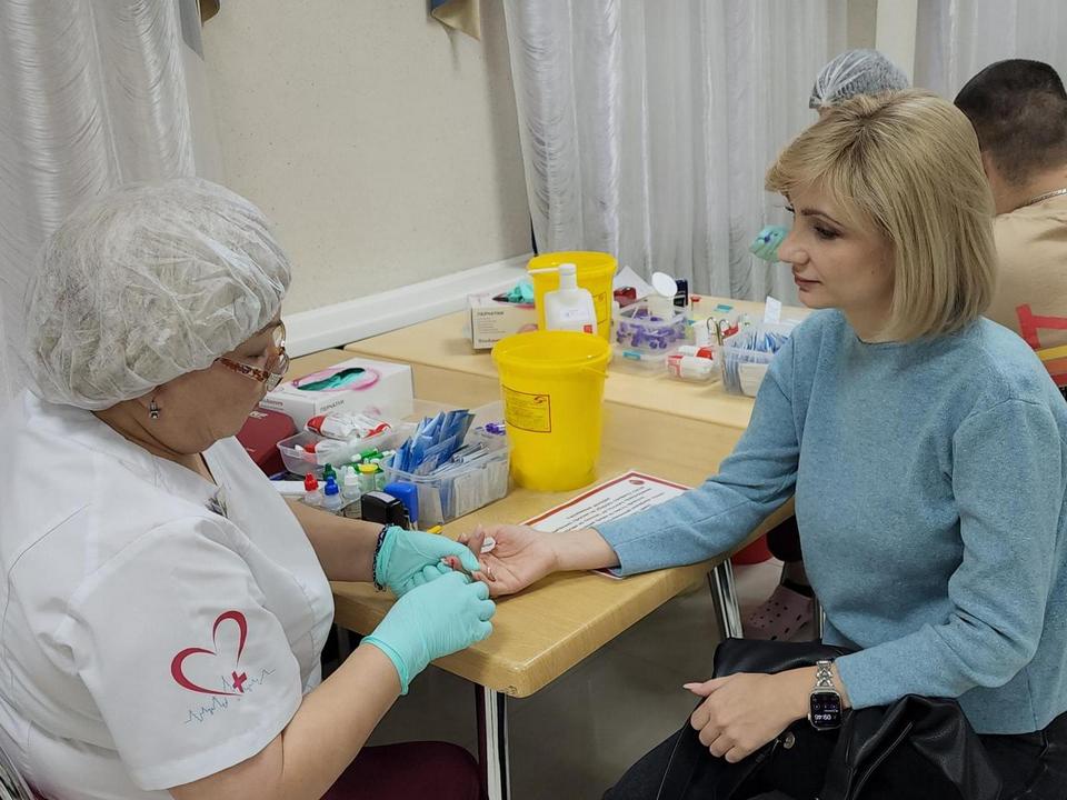 Перед донацией медики провели обследование всех желающих. Они проверяли общее состояние здоровья доноров, измеряли артериальное давление, определяли группу крови, резус-фактор и уровень гемоглобина.