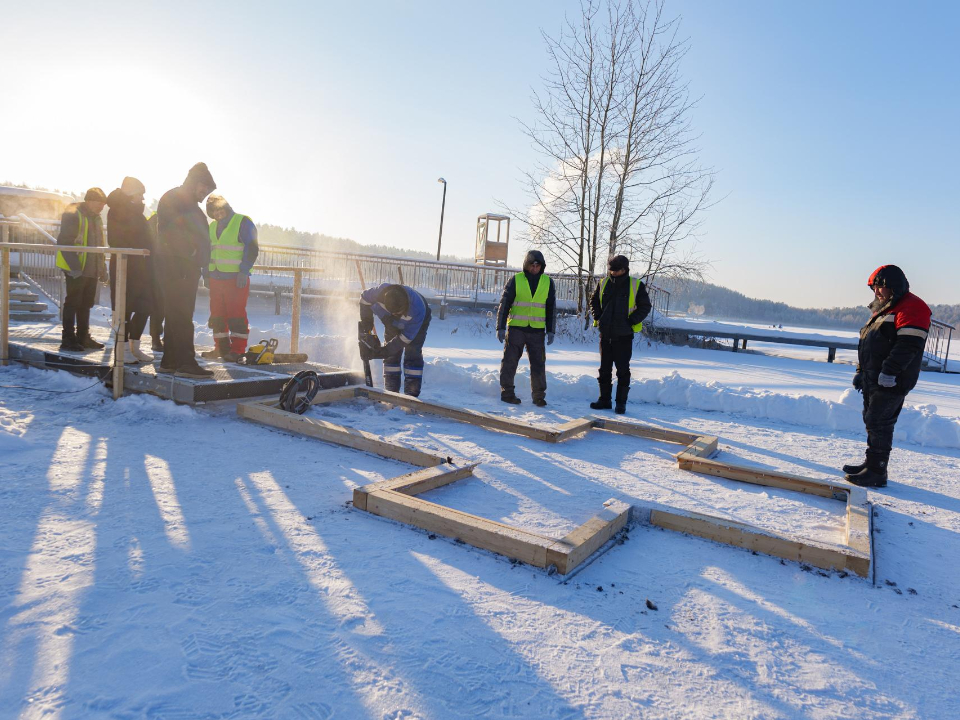 Водолаз обследовал дно глубиной в 1,5 метра, отрегулировал и закрепил опоры и ограждение на дне. Также здесь будет встречать гостей на Крещение ледяной крест, создающая в темное время волшебную обстановку подсветка. На дорожке к купели уложили противоскользящее покрытие, настелили солому и лапник.