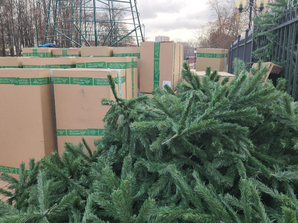 Всего к началу зимы скверы, парки и площади Люберецкого округа украсят 30 нарядных елок и 24 новогодние конструкции.