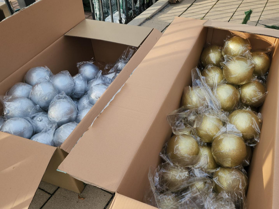 Украшениями служат пластиковые шары разных цветов и размеров, причем их производит сама организация-подрядчик. Всего на 14-метровой елке развесят около 600 игрушек, но перед этим к ней прикрепят кристаллы и гирлянды.