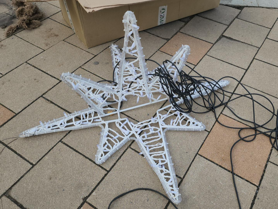 «Елка с основанием, крестовиной — как лего собирается. Даже ребенок может ее собрать. Дальше, там где высота, уже немного и ноги дрожат. Сегодня автовышка была, потому что у нас тяжелая звезда, которая на верхушку одевается», — рассказал представитель подрядчика Владимир Карасени.