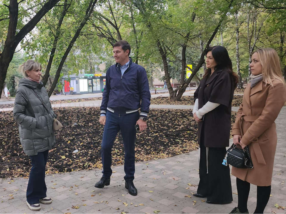 Вместе с жителями прилегающих домов он прошел по скверу, отметил, что дорожники нанесли разметку, чтобы навести порядок с парковкой. В сквере уже разбили и засеяли травой газоны, посадили сосны и разные виды кустарников.