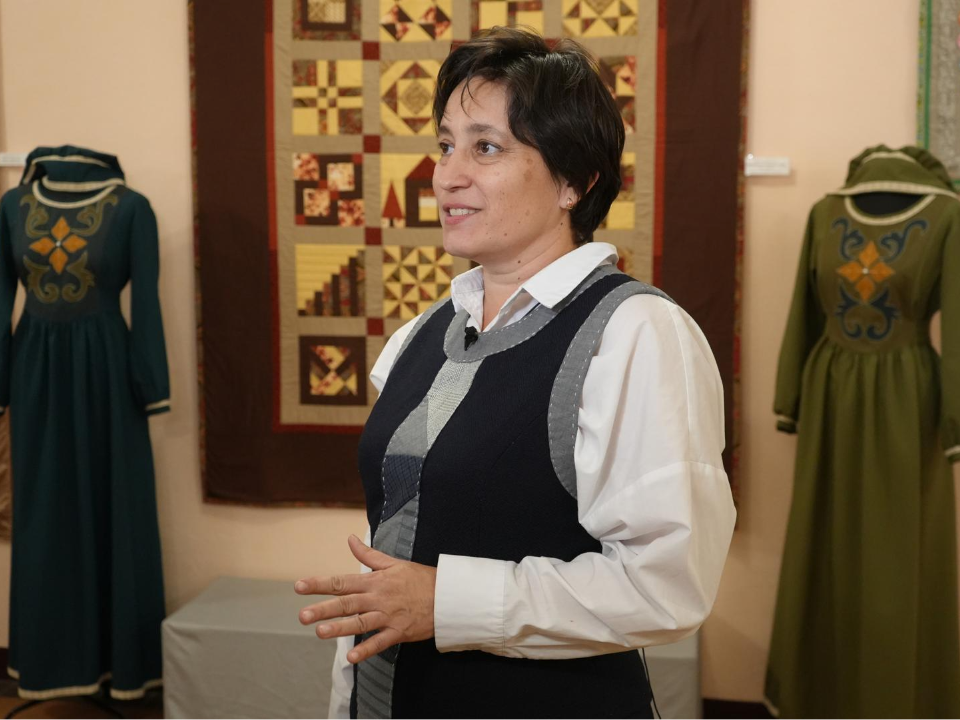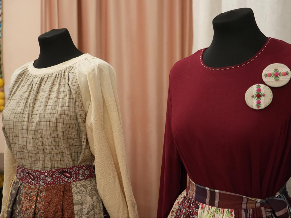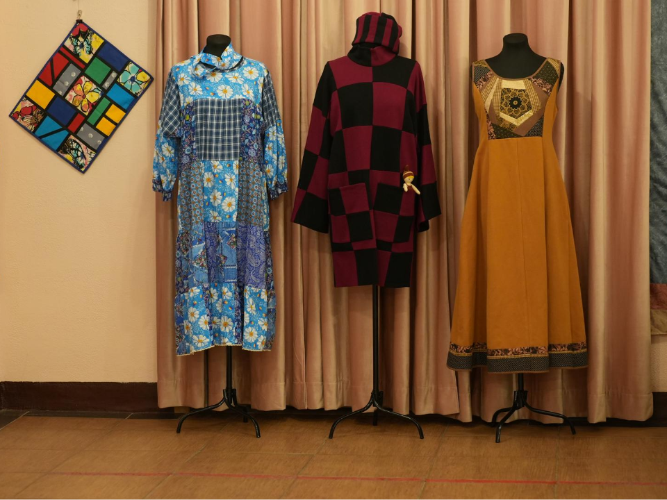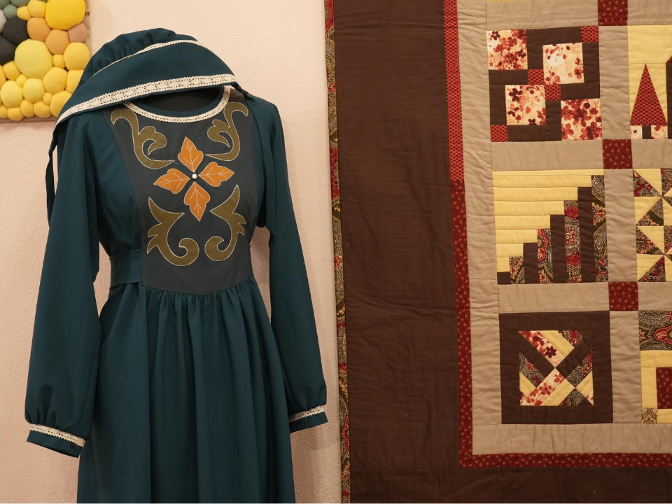 Платья, пледы, аксессуары, лоскутные картины, спокойные природные тона и потрясающая тонкость ручной работы — все это погружает посетителей выставки «Пестрый октябрь» в созерцательное настроение. Хочется ходить, рассматривать и удивляться кропотливой работе мастера.