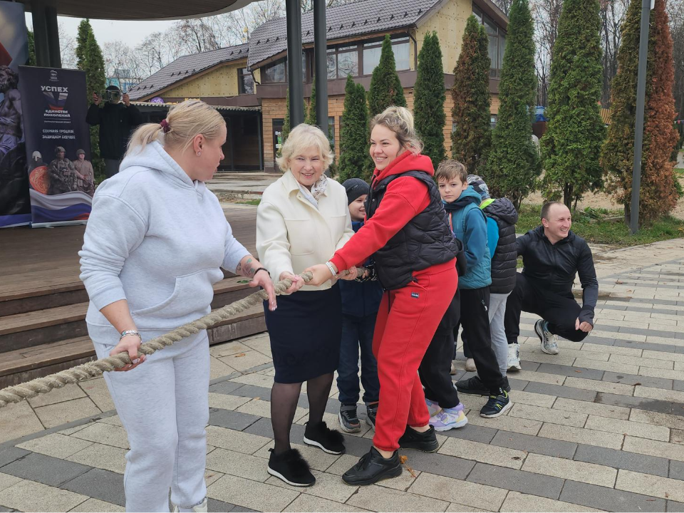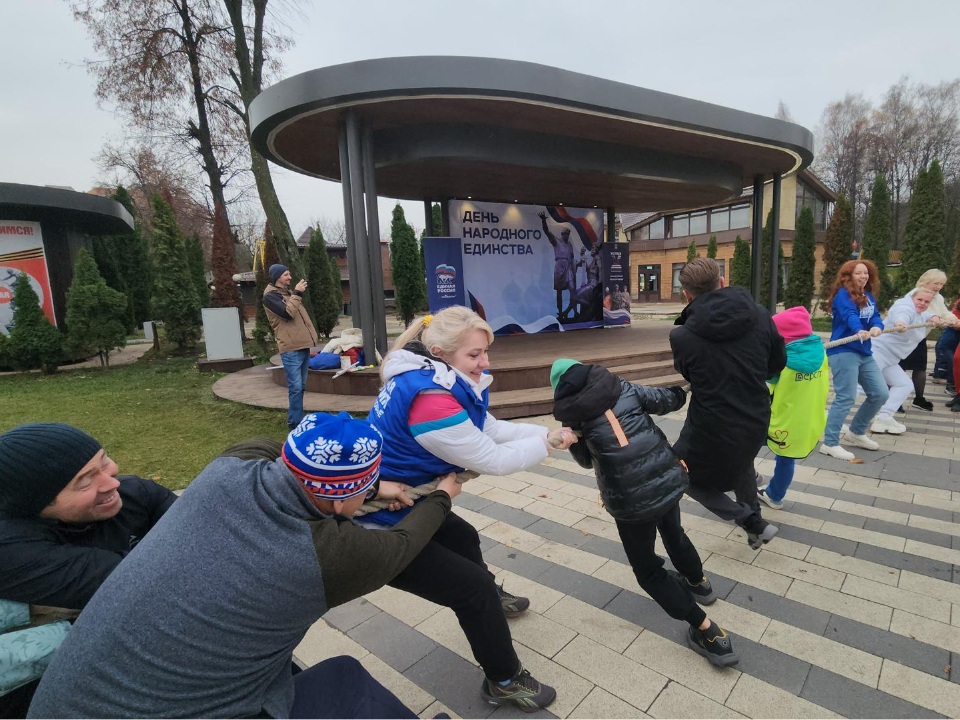 В Наташинском парке праздничный марафон, посвященный Дню народного единства, решили провести длиною в несколько дней. Воскресный день начали забегом на пять километров. В нем приняли участие около 70 человек. На главной площади провели разминку для взрослых, перетягивание каната и активные игры для детей.