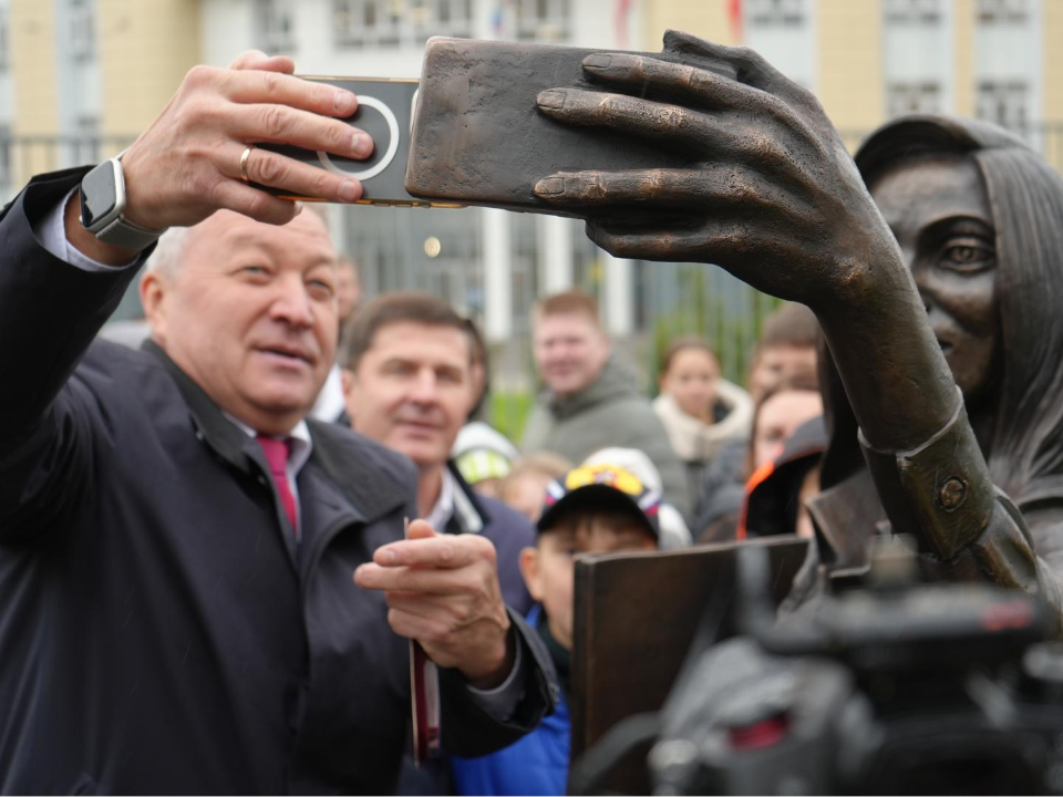 «Мне хотелось, чтобы скульптура была интерактивной, поэтому у нее есть секрет — специальная ниша, куда можно поставить свой телефон и сделать селфи со скульптурой», — рассказал Александр Рожников.