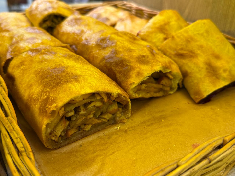 По словам Дениса, самая популярная выпечка — сосиска в тесте и пицца, так как рядом находится школа. Самый популярный десерт — торт «3 шоколада». Пирожков с яблоками в день выпекают по 15-20 штук.