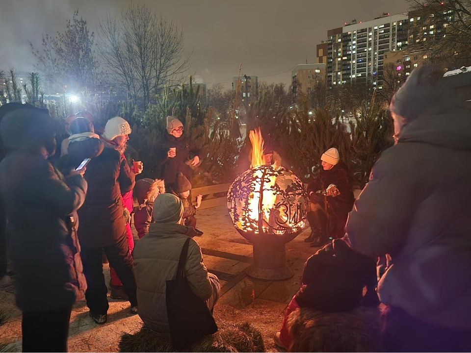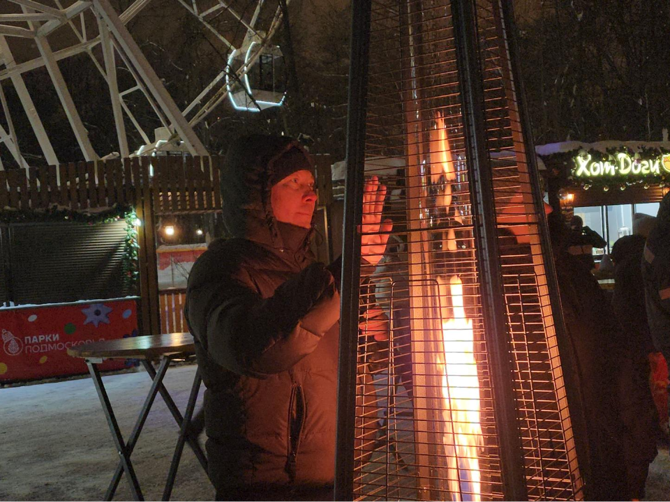 К купелям желающие окунуться шли непрерывно. Волонтеры наготове держали полотенца, чтобы накинуть им на плечи. А согреться после ледяной воды можно было разными способами: в передвижных банях, которые специально для этого установили накануне праздника, у костров в уютных еловых вертепах, а также возле газовых обогревателей, которые сами по себе стали элементом праздничного оформления Центральной площади парка.