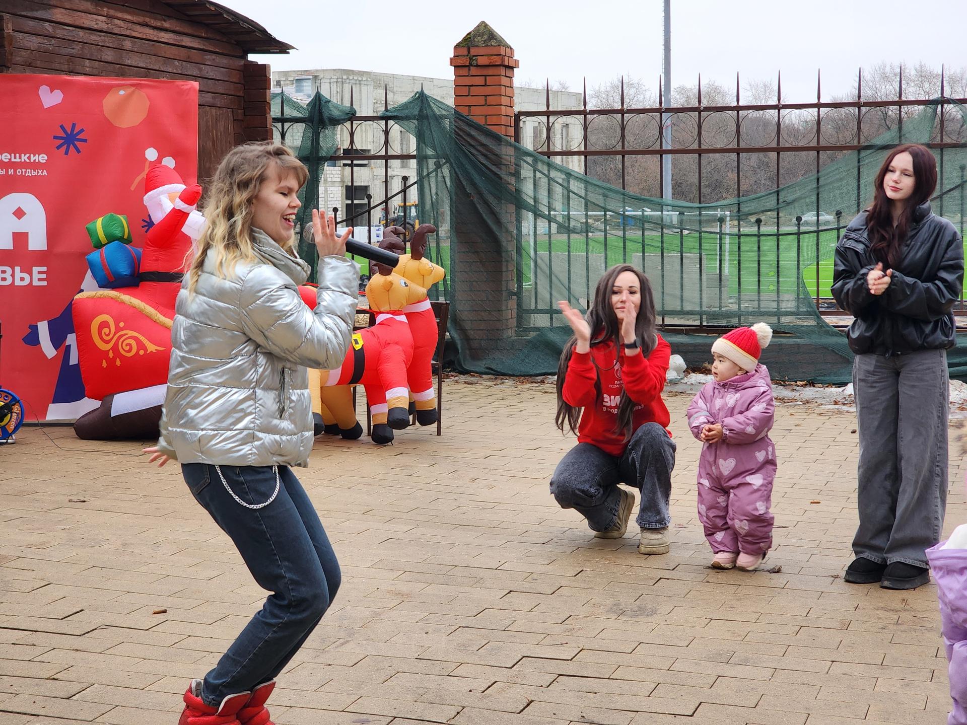 Родители вместе с детьми послушали выступление Снегурочки и певицы Вероники Малюгиной-Корниенко, которую команда называет «Местной звездочкой».