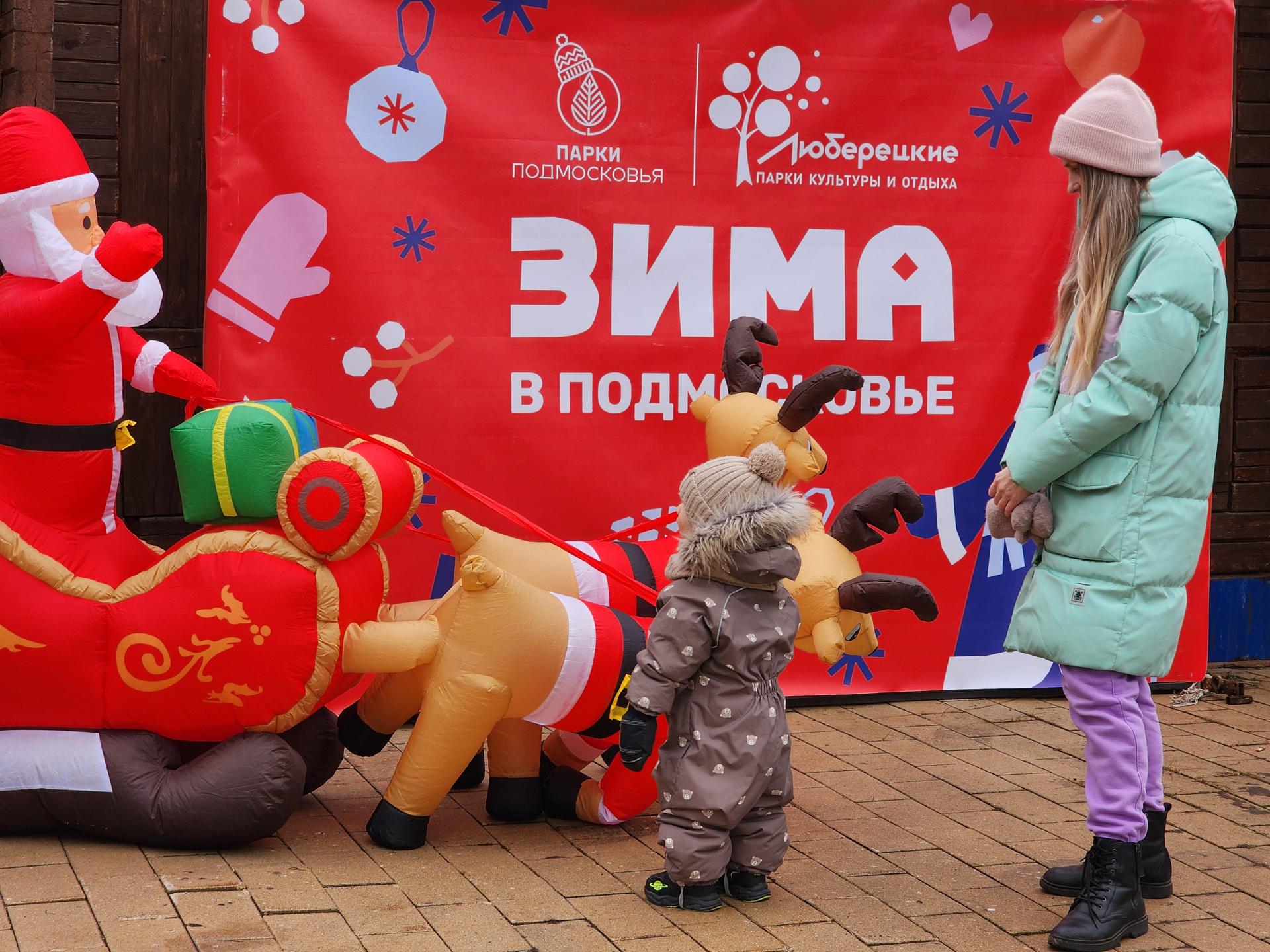 Гости сделали памятные фотографии в красивой праздничной фотозоне с надувными Дедом Морозом, санями и оленями.