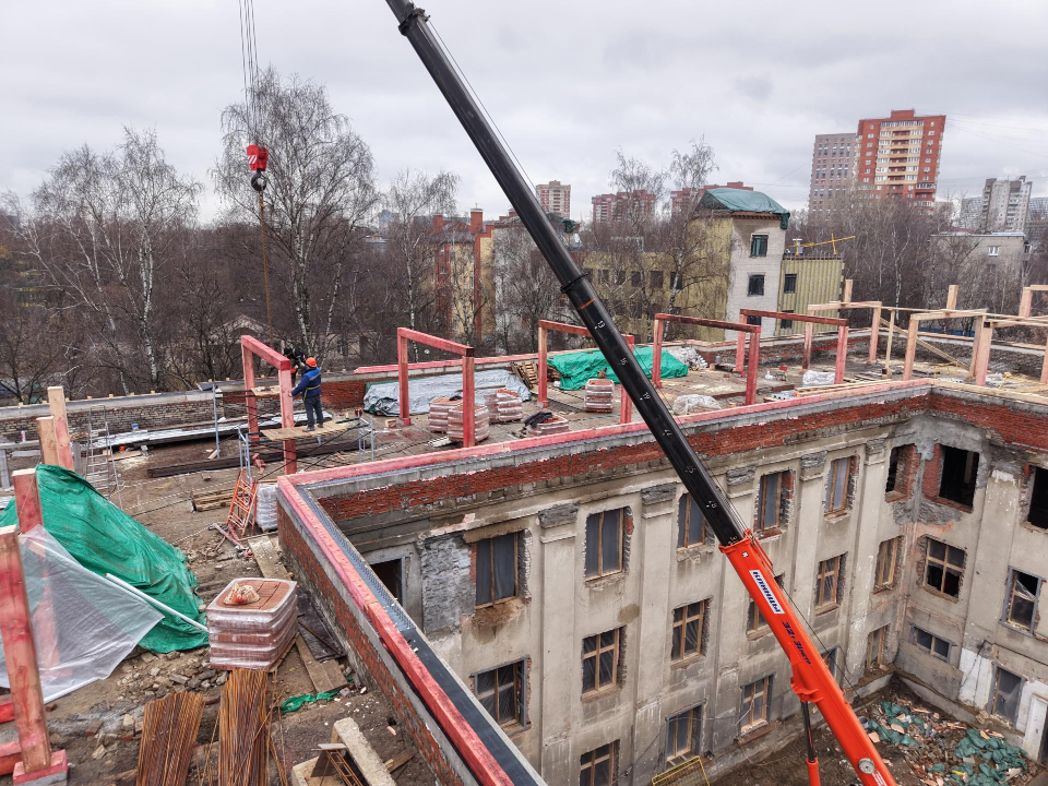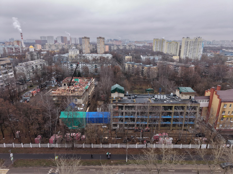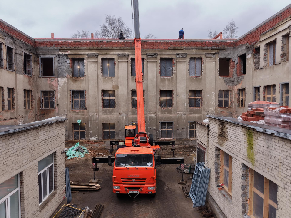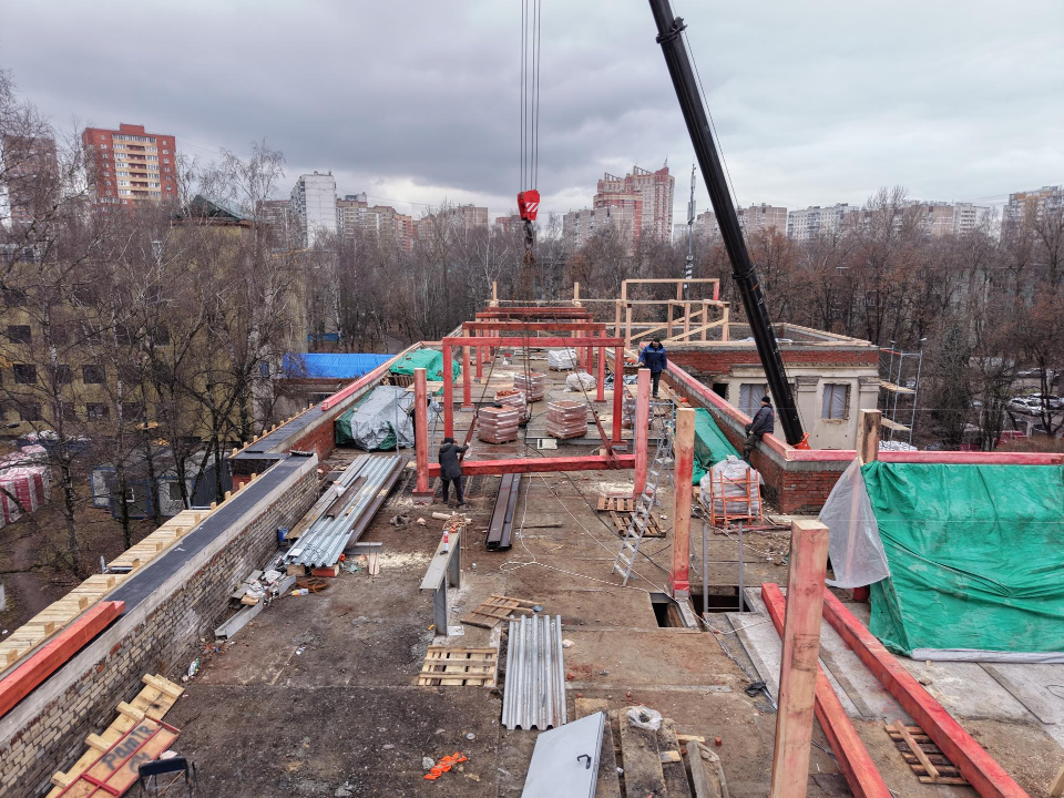 Внутри специалисты монтируют сантехнику и систему отопления. После подключения здания к теплоснабжению начнется этап внутренних отделочных работ и строители смогут приступить к укладке плитки.