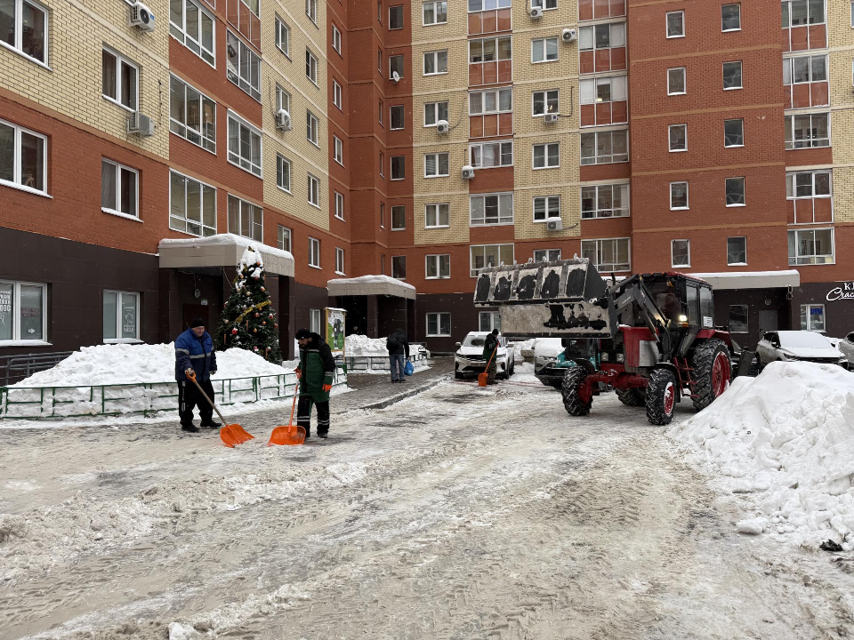 Поселок Октябрьский в Люберцах постепенно расчищают от последствий сильных снегопадов. Каждый день на улицы выходят 60–70 рабочих, чтобы освободить дороги и тротуары от сугробов.