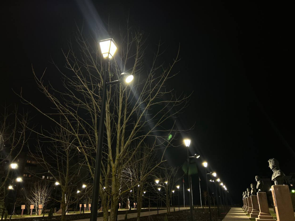 Одной из самых впечатляющих деталей преображения памятного места стала подсветка. Каждый монумент и бюст на «Аллее Героев» в темное время суток будет освещаться индивидуально.
