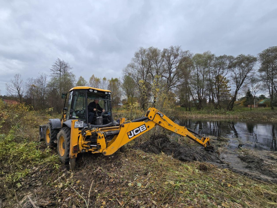 Несколько дней подряд подрядные организации работали над улучшением состояния пожарного водоема и подъездных путей к нему в деревне. Трактор и экскаватор-погрузчик были задействованы для очистки дна водоема, укрепления берегов, удаления кустов и сорняков, а также измельчения ветвей деревьев. Вся собранная грязь и мусор вывезены с территории на самосвале.