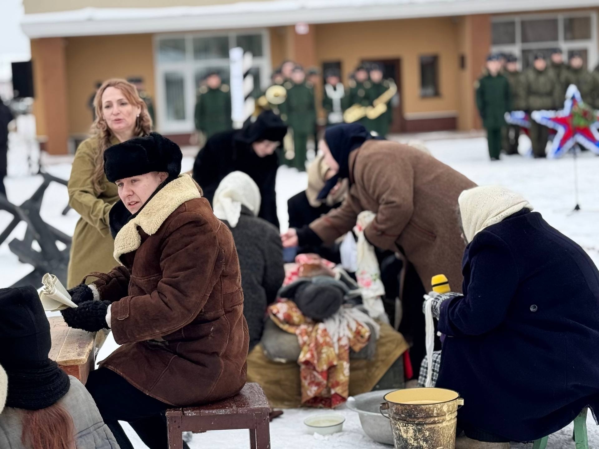 На площадках работали волонтеры Подмосковья: среди них — студентки Можайского техникума, разливавшие горячий чай на фронтовой поляне. Постановку театра «Надежда» можайцы смотрели, не сдерживая слез.