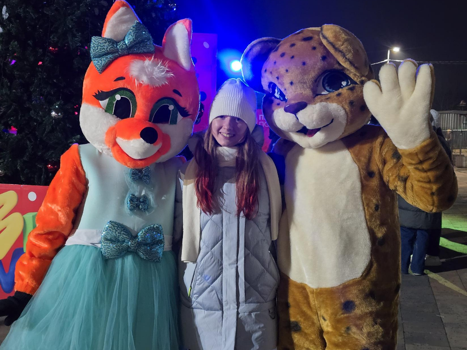 Посетителей развлекали любимые персонажи русских сказок — Лиса Патрикеевна и Снежный Барс. На всей территории парка работали тематические площадки: фотозона и ярмарка мастеров «Новогоднее чудо», где ремесленники предлагали купить уникальные сувениры собственного изготовления — от теплых вязаных игрушек до изысканных ювелирных изделий.