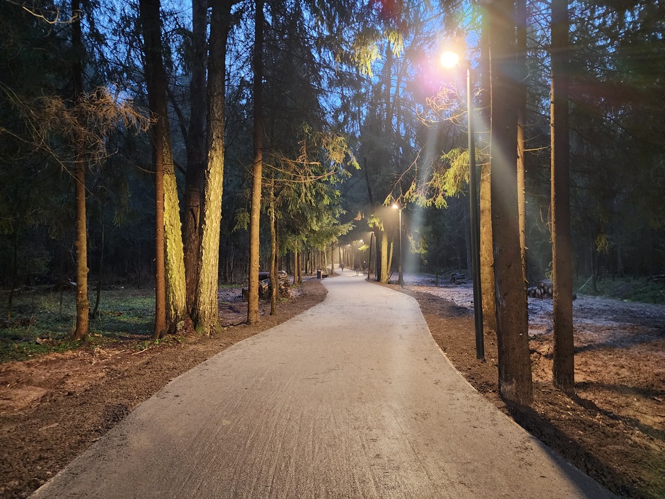 В Пироговском лесопарке открылся участок «Дороги в Лавру»: завершилось обустройство 5 километров освещенных пешеходных дорожек. По проекту благоустраивается не только дорожная сеть, но и новые общественные пространства.