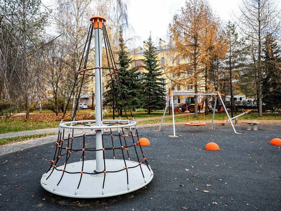 Реконструкцию провели на площади в 1,8 гектара. В настоящее время рабочие устанавливают лавочки и урны, игровые элементы, подключают фонари, заканчивают укладку плитки на тротуары и обустройство газона.