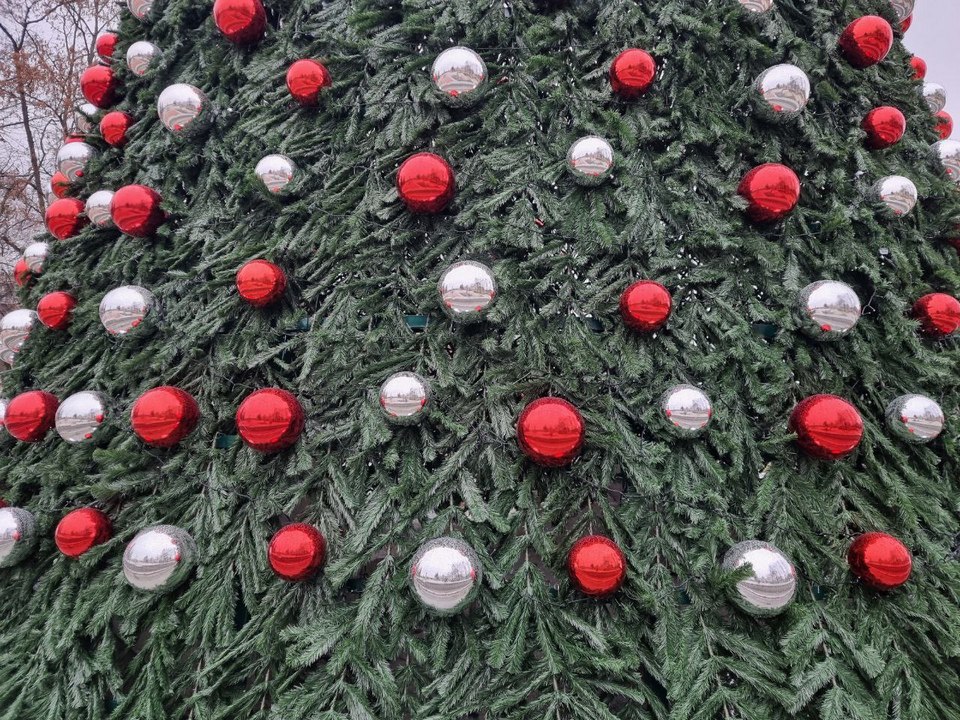 В центре установили огромной высоты праздничную ель, монтаж которой завершили накануне. По словам местных жителей, она поражает своей высотой и красотой как днем, так и ночью благодаря яркой подсветке.
