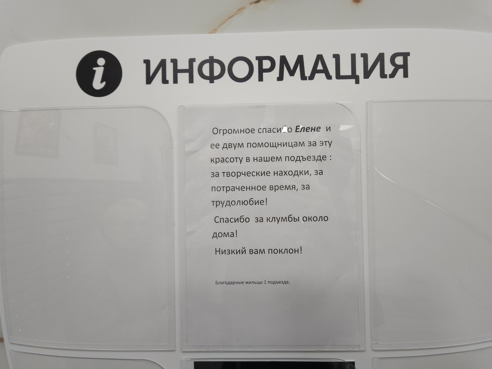 Осенью же очередь на обновление дошла до подъездов. Строители привели в порядок стены и потолки, заменили плитку на первых этажах, установили современные лифты и информационные экраны. Сегодня жильцы занимаются украшением пространств.