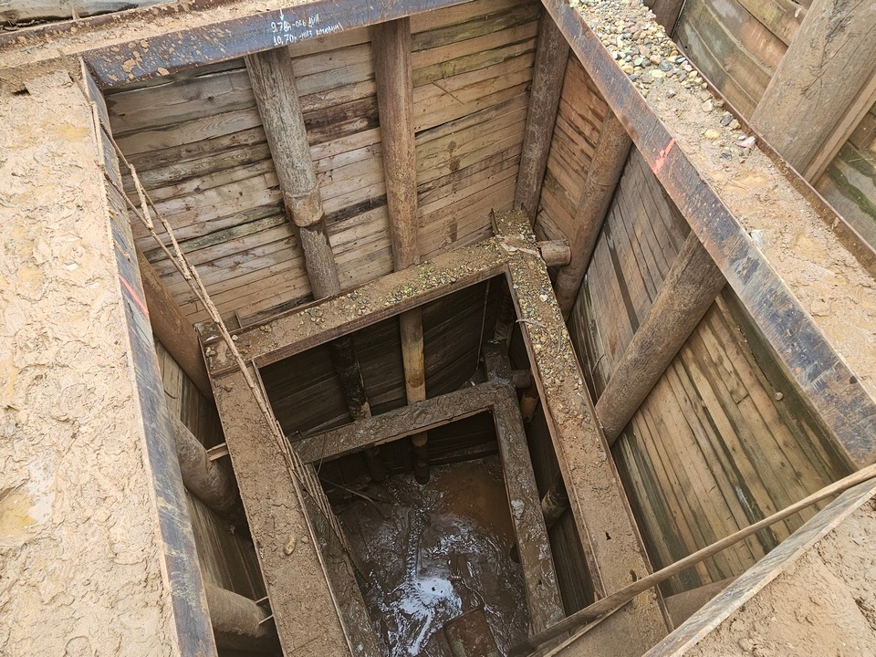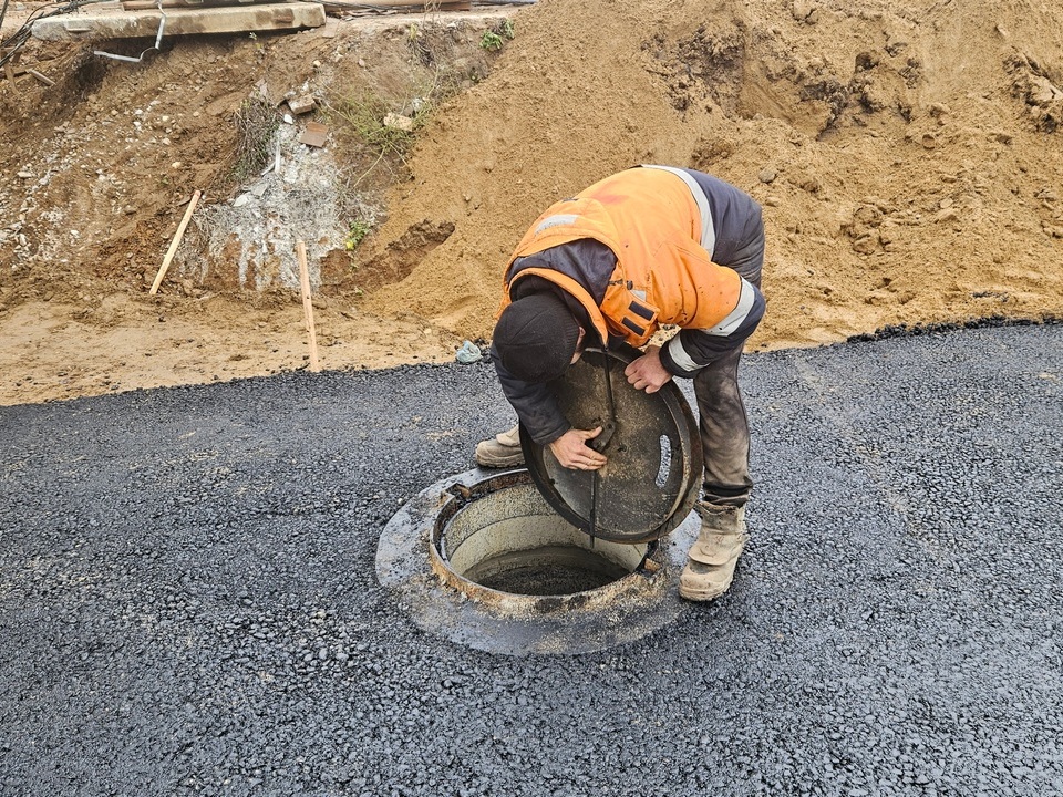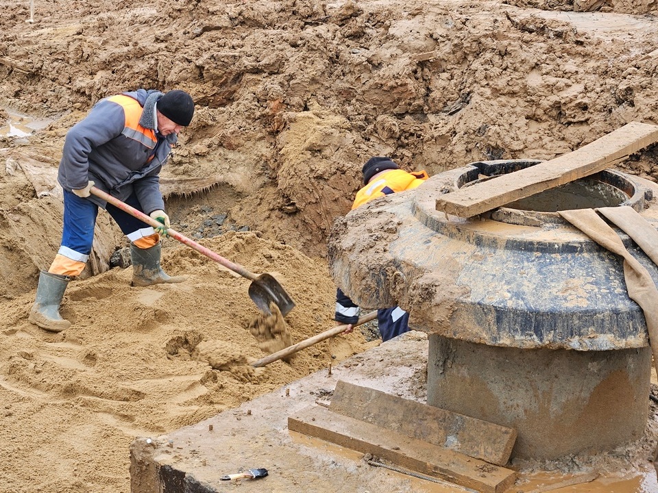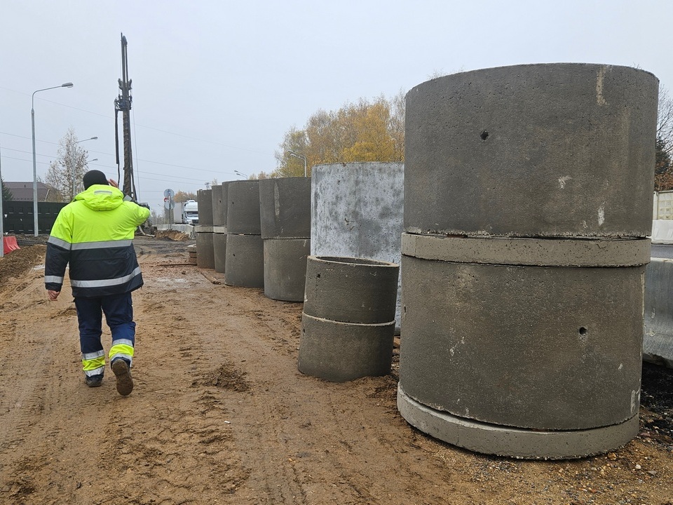 «Дорога получила уклон в сторону ливневой канализации, чтобы вода не стояла, а сразу уходила через решетки к ливнево-очистному сооружению. Водосбор ливневки заложен на глубине 12–14 метров. По трубам вода будет стекать в бочку. Там ил и мусор осядут, а очищенная часть воды уйдет в речку Мерянка», – пояснили рабочие.