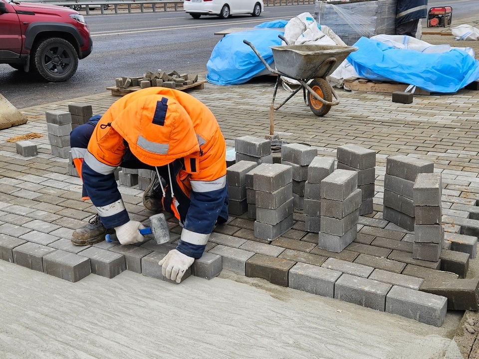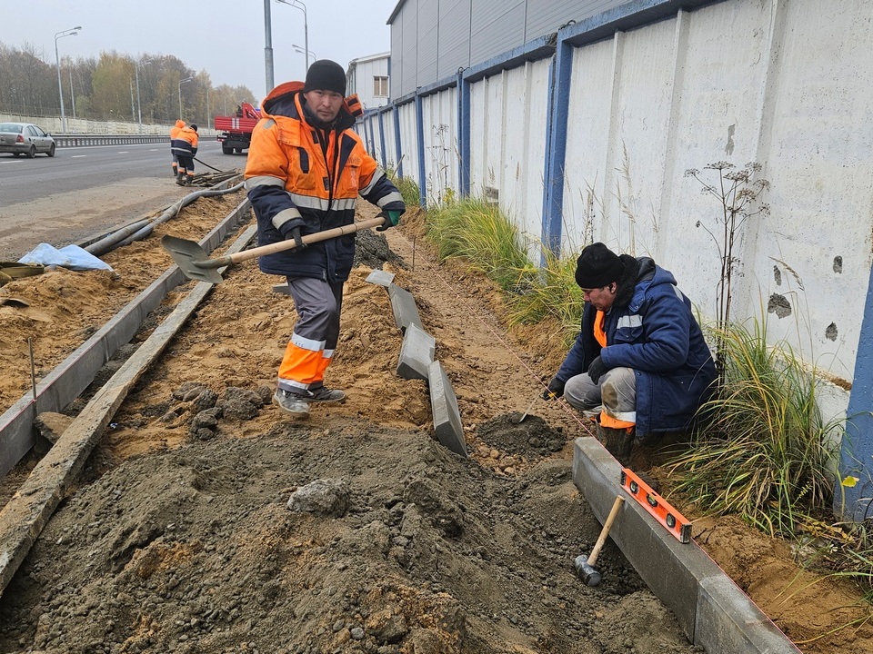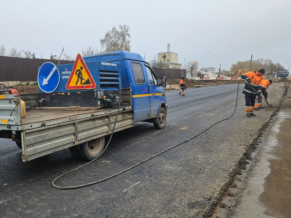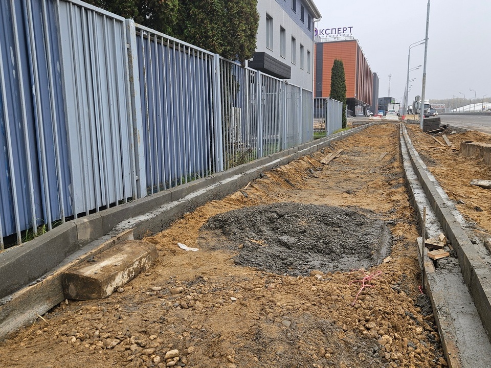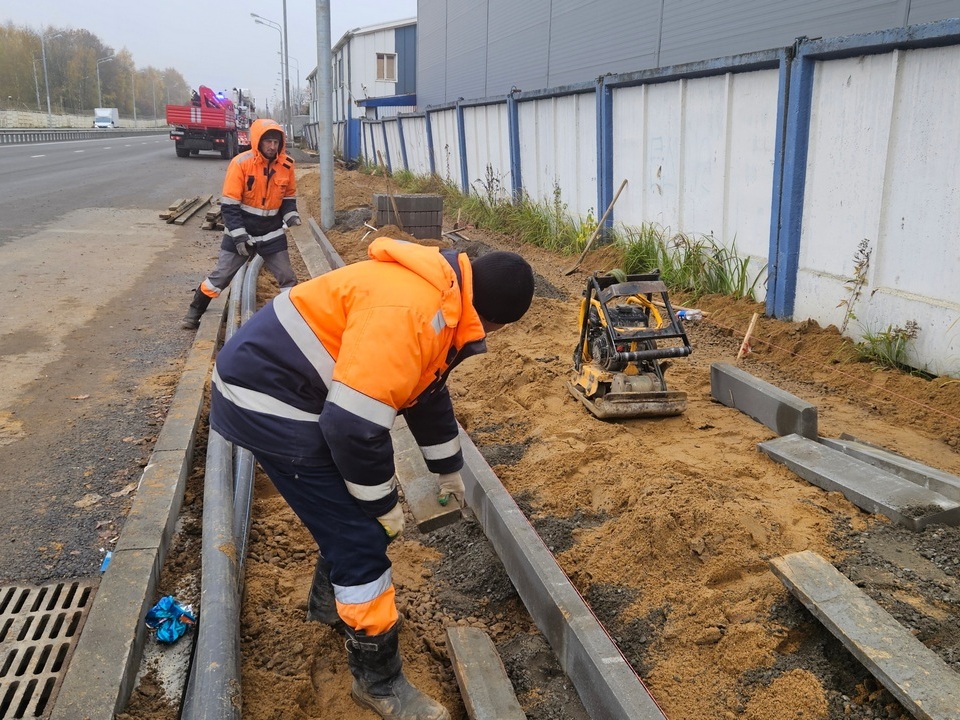 Асфальтовое покрытие на некоторых участках дороги уже уложено, установлены бордюры и поребрики, готовятся тротуары, площадки под остановки и пешеходные переходы. Параллельно выполняется благоустройство прилегающих территорий.