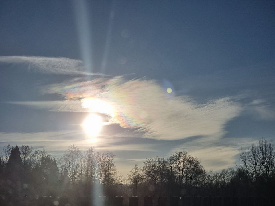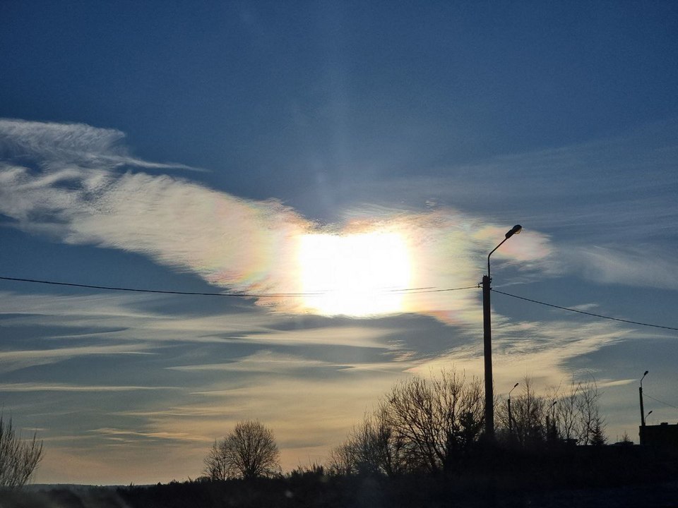Благодаря резкому похолоданию жители Мытищ утром увидели необычное явление в небе: радужные облака и даже частично солнечное гало. Свечение длилось на протяжении получаса и было отлично видно из всех частей города. Редкое оптическое явление окрасило расположенные в близи солнца облака во все цвета радуги. По словам экспертов, свет преломился в тонких зимних облаках и вызвал свечение. Лучи отразили не водяные капли, как бывает летом, а кристаллы льда, продемонстрировав цвета всего спектра.