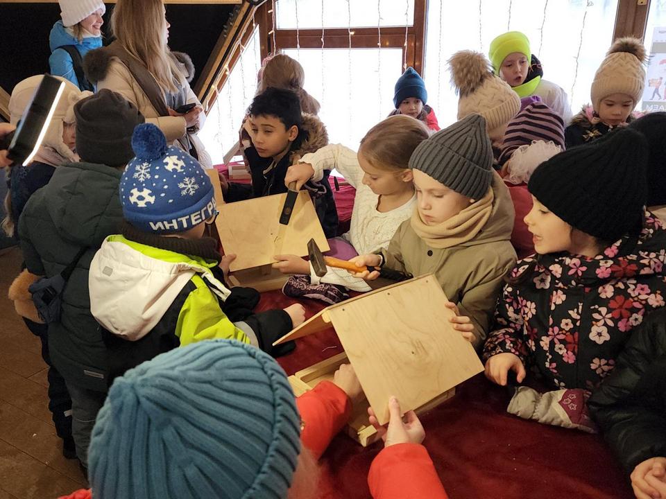 Чтобы посещение нацпарка было не только интересным и веселым, но и полезным, гости собрали кормушки для птиц. Их развесят на территории школы или парка.