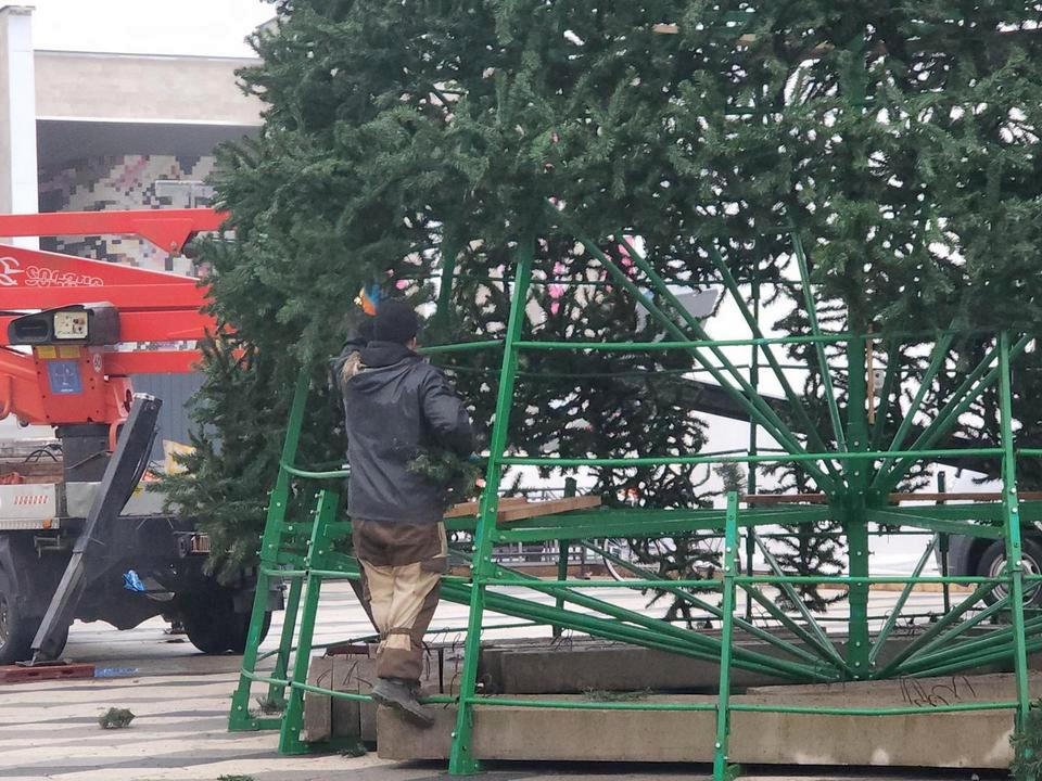 Рабочие начали монтаж главной новогодней ели с яркими световыми панелями. В этом году конструкция будет украшать не центральную площадь Мытищ, как раньше. Теперь она будет украшать пространство перед ДК «Яуза», где уже в начале следующей недели заработает бесплатный каток.