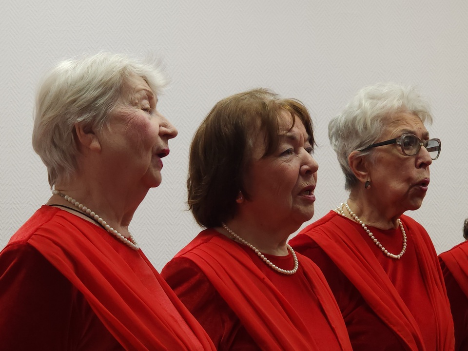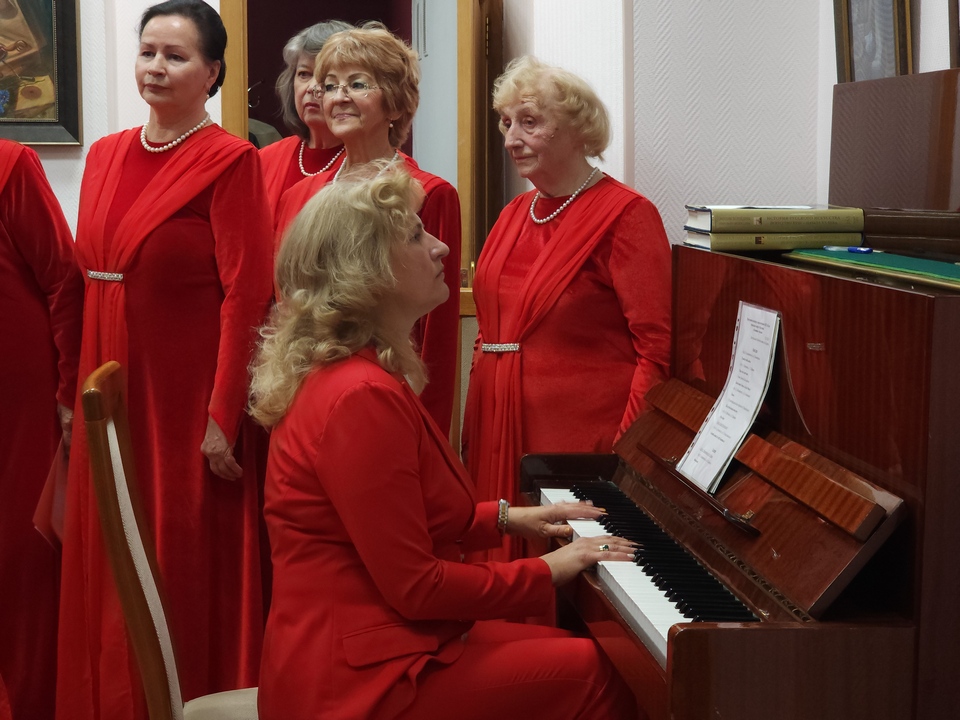 Концерт «Хора ветеранов» прошел в библиотеке имени Кедрина. Народный коллектив в стильных красных платьях посвятил выступление «Золотая пора» наступившей осени. Насладиться музыкальным вечером смогли все посетители библиотеки.
