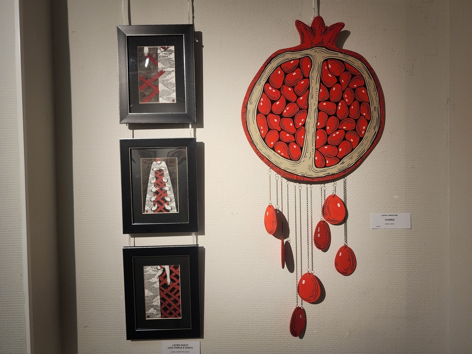 Художница сделала свою выставку интерактивной. Так, посетители могут подойти к «Стене предсказаний», выбрать один из символов наступающего года и узнать о своем будущем.