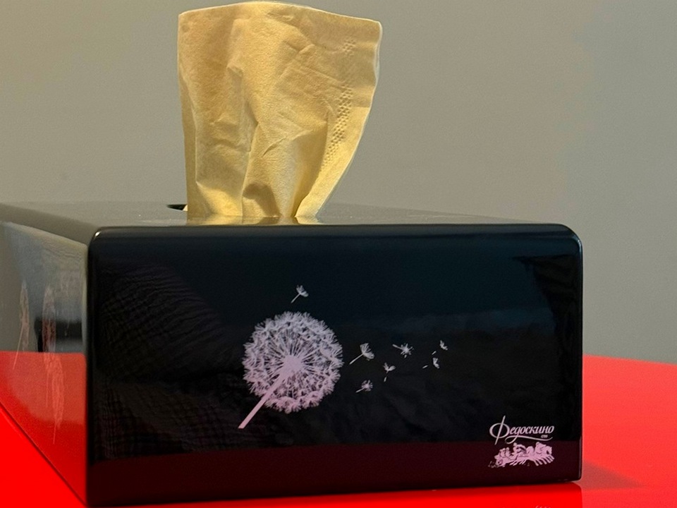 На Федоскинской фабрике миниатюрной живописи, расположенной в одноименном селе Мытищ, возродили искусство литографии и с ее помощью украсили белыми воздушными одуванчиками новый предмет, имеющий применение в быту. На этот раз мастера создали и украсили салфетницу.