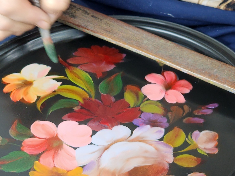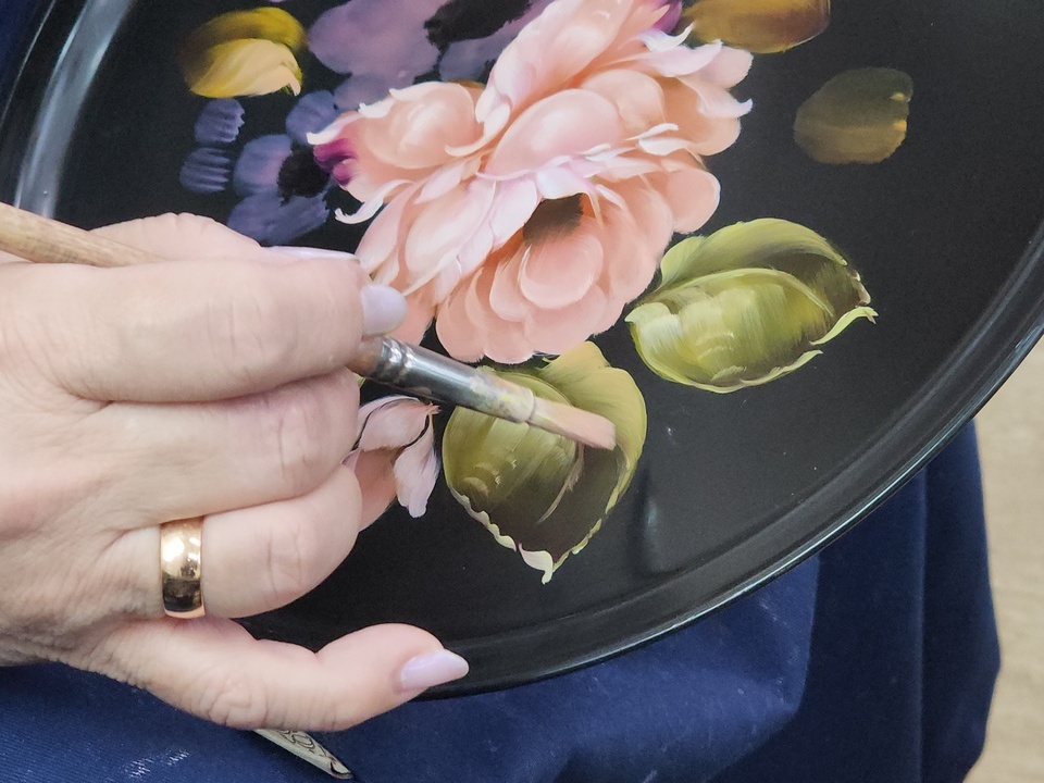 Больше 20 лет Нина Большова не только рисует, но и проводит мастер-классы для посетителей, приобщая их к волшебству жостовской росписи, передавая свое мастерство новым поколениям.
