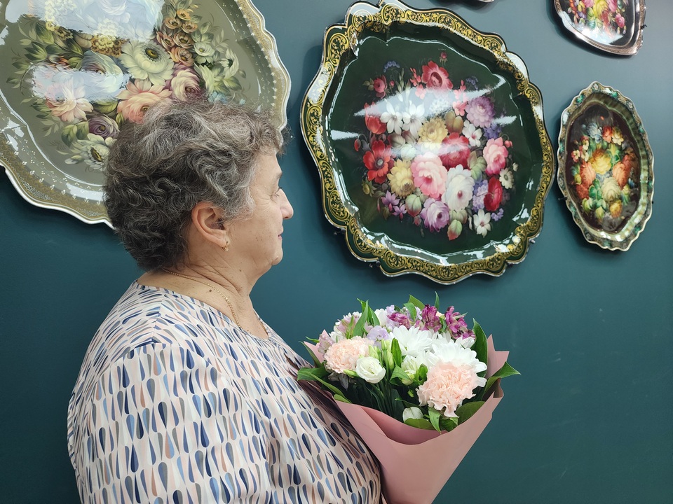 В год юбилея фабрики художнице Нине Большовой вручили заслуженную награду – Почетную грамоту главы городского округа за 50-летний добросовестный труд.