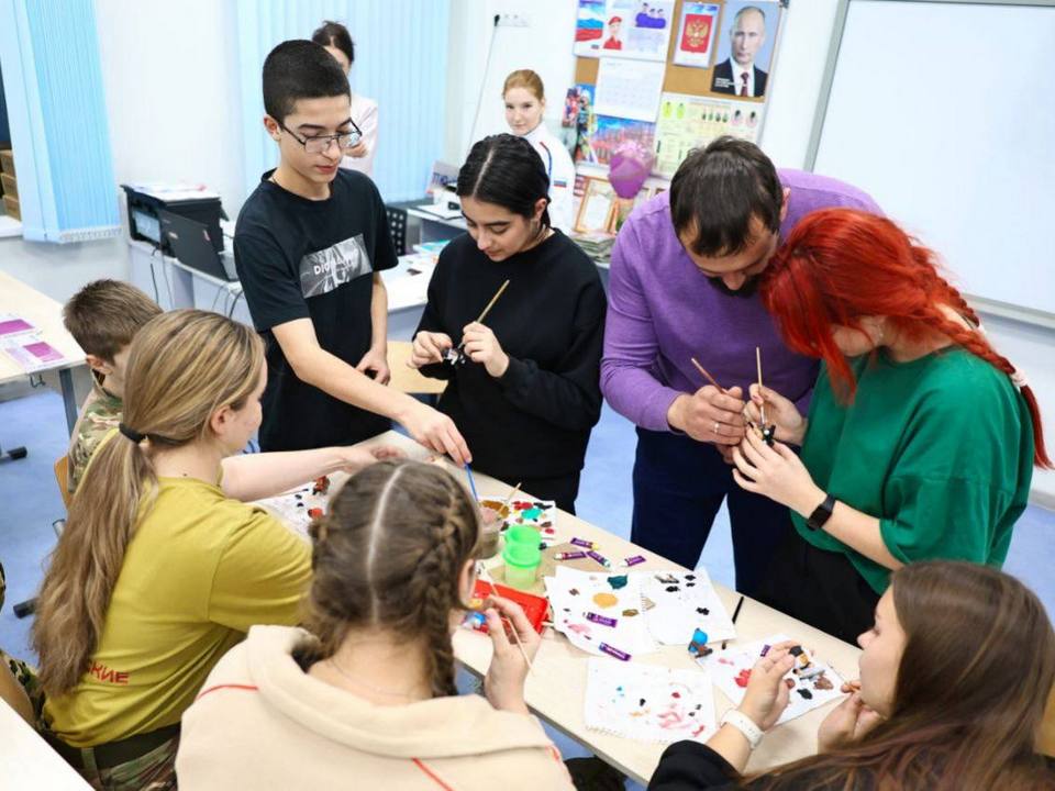 Ученики школы № 3 им. генерала Б. А. Феофанова вместе с членом мытищинского отделения Ассоциации ветеранов СВО Григорием Шаповаловым на уроке слепили и разукрасили несколько десятков небольших талисманов для бойцов. В качестве основы они выбрали образ всеми любимого загадочного зверька — Чебурашки. Школьники дополнили его образ юнармейским беретом и вложили в его лапы оружие.