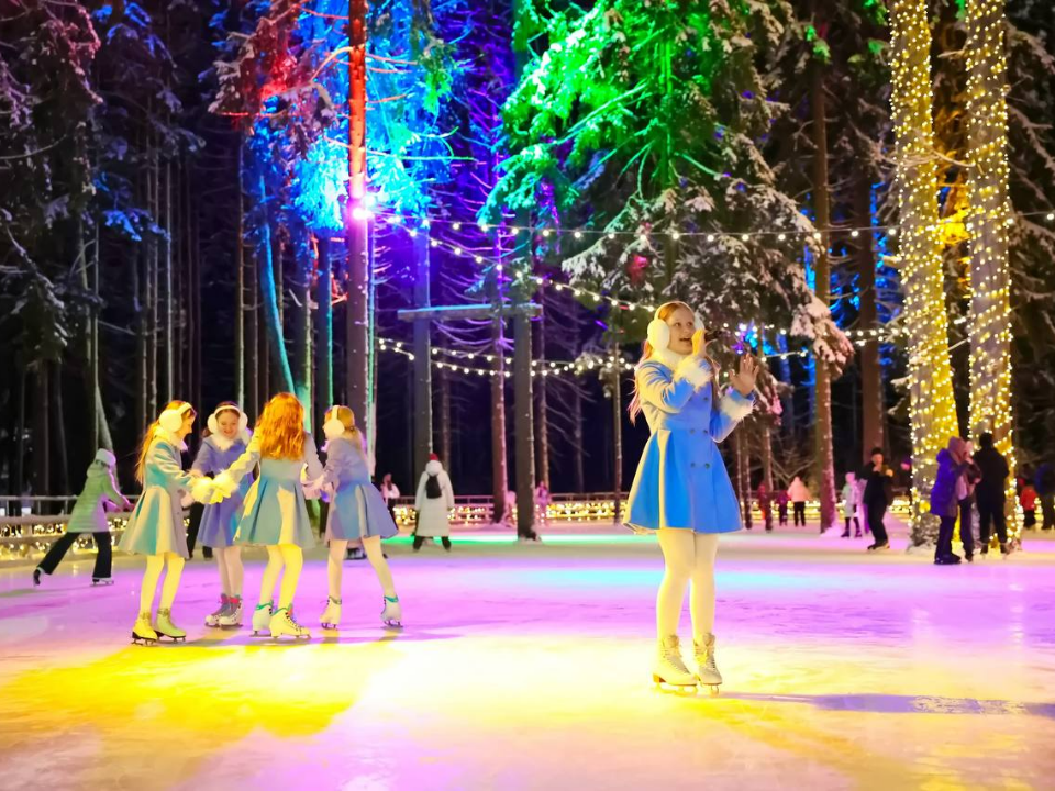 Главной особенностью новой локации стало ее расположение: лед интегрирован в природный ландшафт лесопарка. Посетители смогут совмещать активный отдых с прогулками среди заснеженного леса.