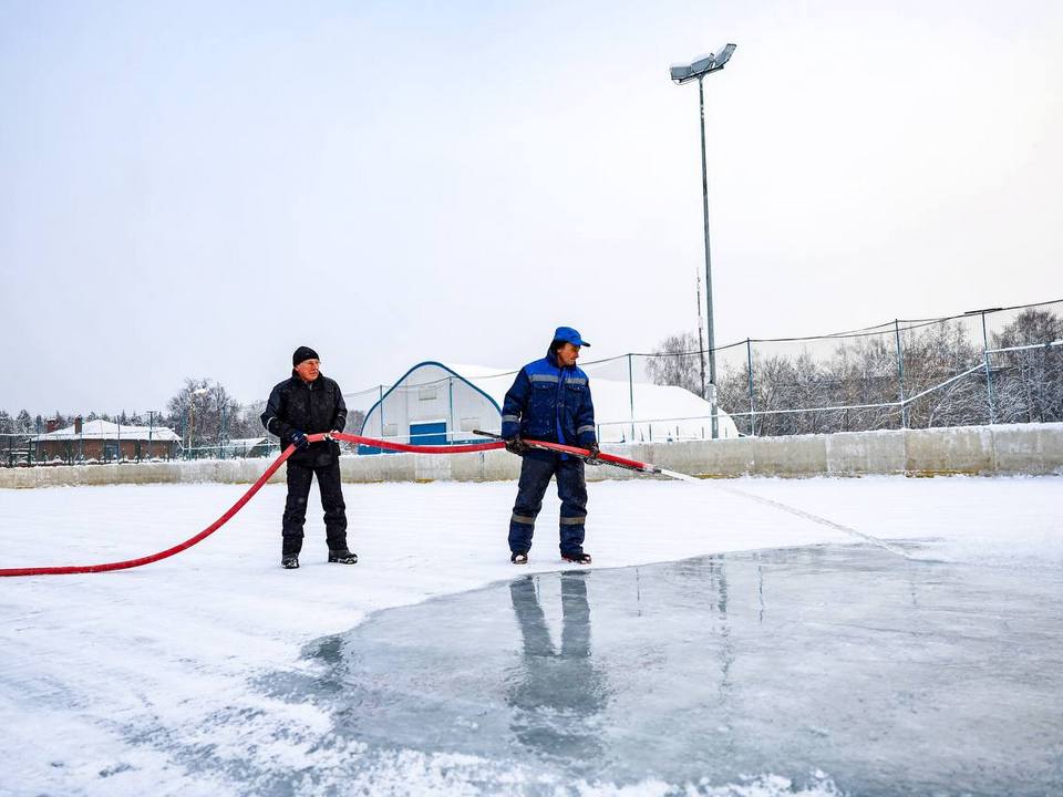 Еще одну ледовую площадку залили в Мытищах. В морозы ее подготовили на базе спортивной зоны на стадионе «Труд» в микрорайоне Поселок Пироговский. На протяжении нескольких дней рабочие слой за слоем заливали прочный лед с помощью пожарных рукавов.